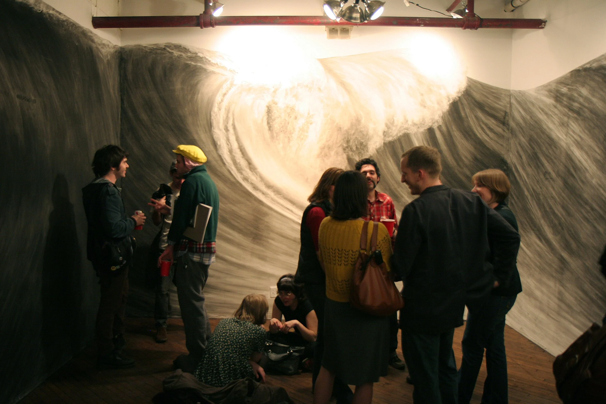 Spring Break 2009 features a new large-scale wall drawing by Phillip Adams. This work encourages the release from our turbulent times: the crushing weight of the impending collapse of the global economy, wars, nuclear proliferation, growth of extremism, climate change, ETCETERA. The doom and gloom scenarios are transformed into rapture and revitalization, which can only be found during Spring Break 2009.