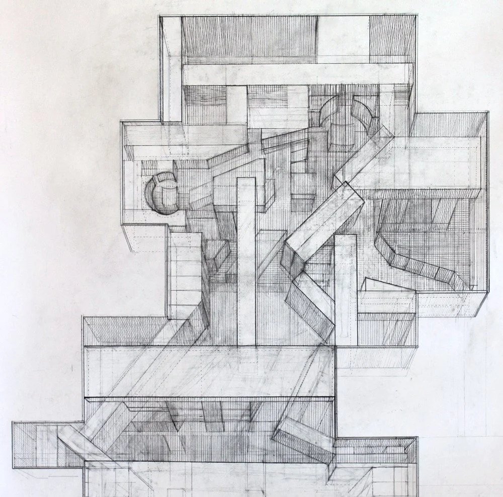 The artist explores physical support systems as both a metaphorical construction and an opportunity for aesthetic expression. The abundance of joists and beams within the crate are meant to brace the absent form, but they also make it impossible to safely pack or unpack the hypothetical object. Load-bearing structures are overbuilt to the point of simultaneous beauty and mechanical failure. This is a fantasy burdened by gravity; here, even imagined forms have real weight.