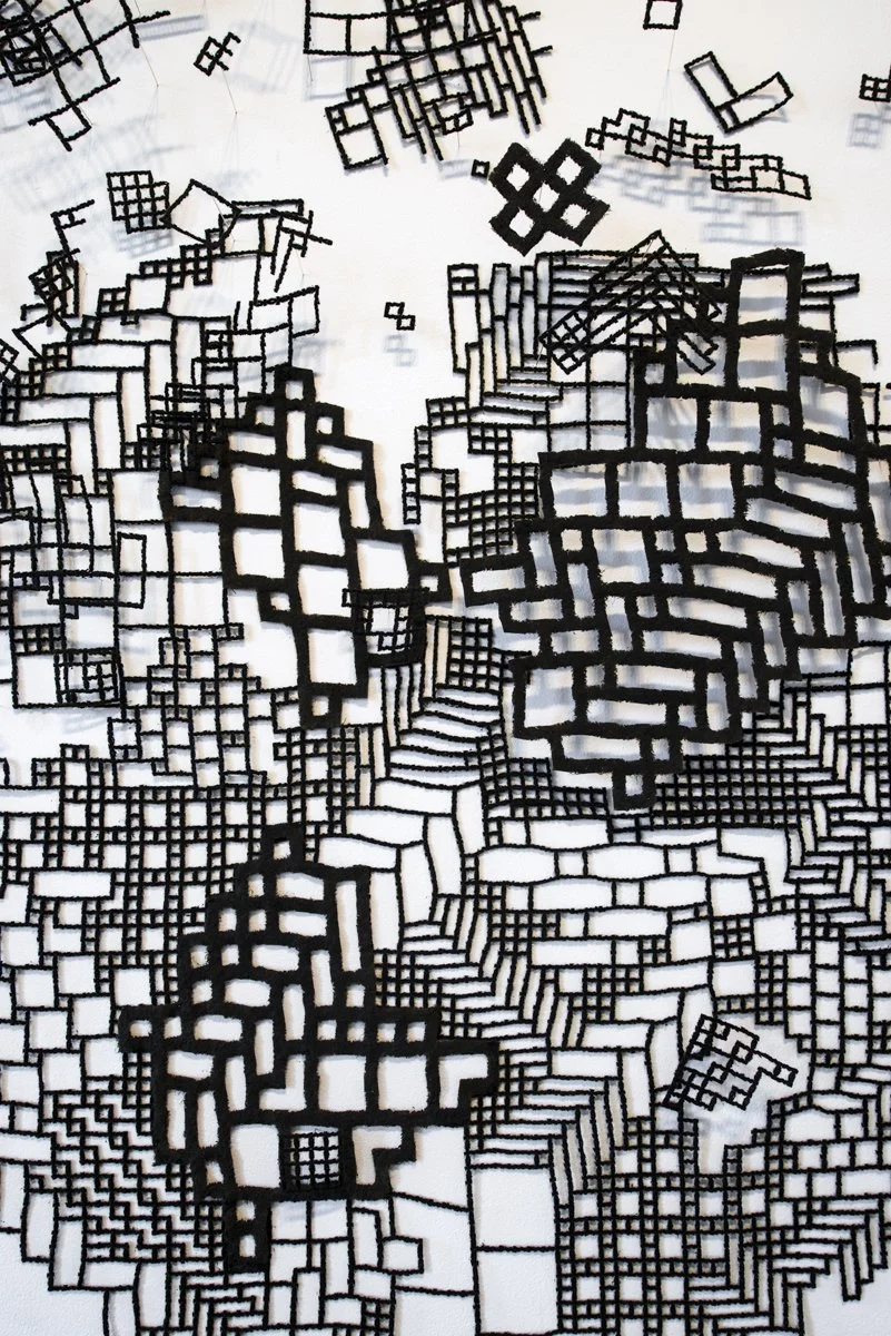 Landau’s work embodies both architectonic and organic, decorative and chaotic qualities. She sees the potential of ornament and pattern as conceptual and structural. Landau looks to the natural world for inspiration and strategies to build her work. Through her work she questions ordering and impermanence, which in turn, examine the kinship between both presence and absence. Landau represents these ideas in an intuitive manner, filtered by geometry, the history of the decorative arts, and the natural sciences.